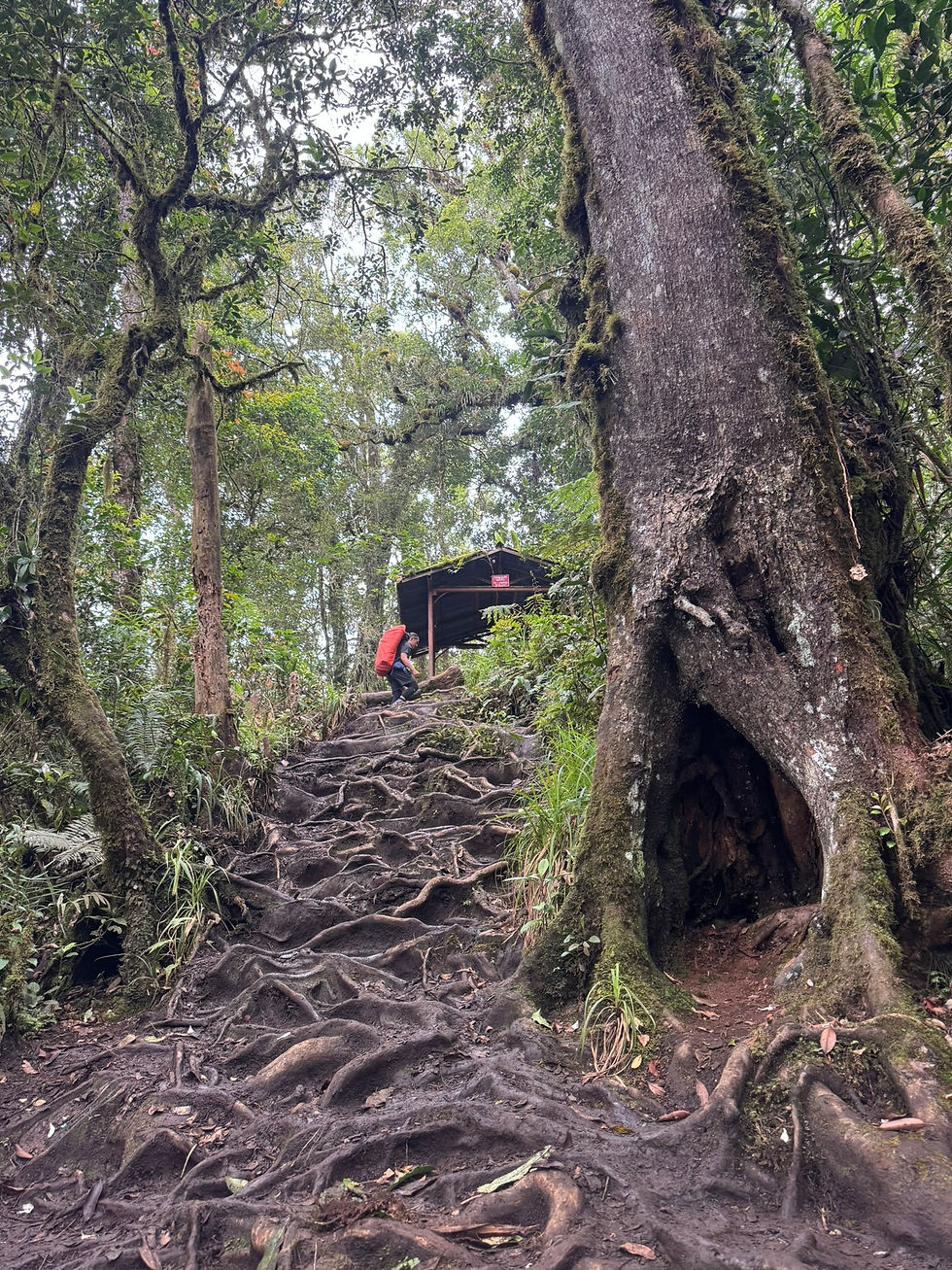 The network of tree roots was both a blessing and a curse. On the one hand, they formed a kind of natural staircase, giving the climb shape and rhythm. On the other, a misplaced step on the slick wood could send you sliding into a nasty fall.