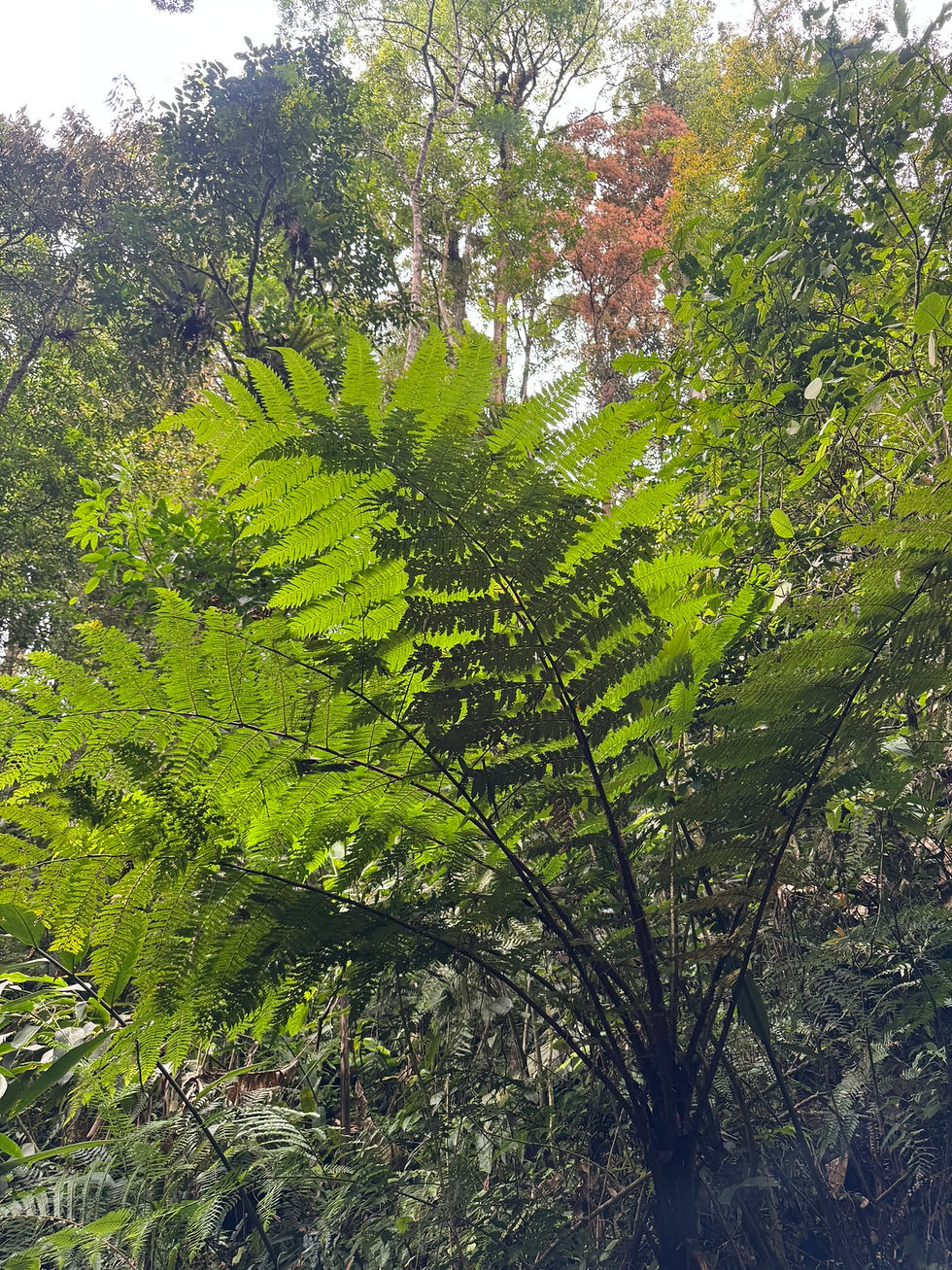 Big, beautiful ferns unfurled in every direction, their broad fronds arching gracefully over the trail and adding to the rainforest’s lush, almost primeval atmosphere.