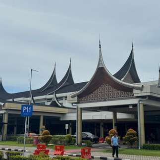 From the backseat, I admired the traditional buildings in this region have striking multi‑curved roofs, their sweeping lines rising and dipping like waves — a signature style of Minangkabau architecture.