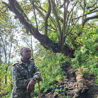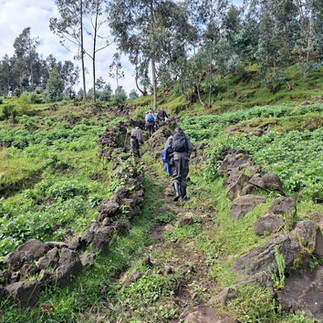 Downhill is usually my strength; I love moving fast, letting gravity do the work. But on Bisoke, that enthusiasm came with consequences. The trail had turned into a network of narrow ruts, some two to three feet deep, carved by years of rain and footsteps. They were treacherous. My foot would get wedged in one, and the rest of my body would twist as the mud or a hidden tree root sent me sliding. More than once, I was a centimeter away from popping a hip out of place.